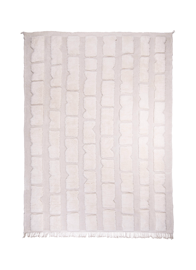 Серия Soft Grid появилась в результате исследования формы, ритма и линии - элементов, которые обычно воспринимаются как строгие и конструктивные, но здесь они намеренно смягчены и словно растворяются в материале. Использование техники ткачества bitrame с плоской основой и рельефным ворсом позволило создать тонкую глубину: рисунок не нанесён поверх, а заложен в самой структуре ковра. Шерсть превращается в объём, а узор - в фактуру.