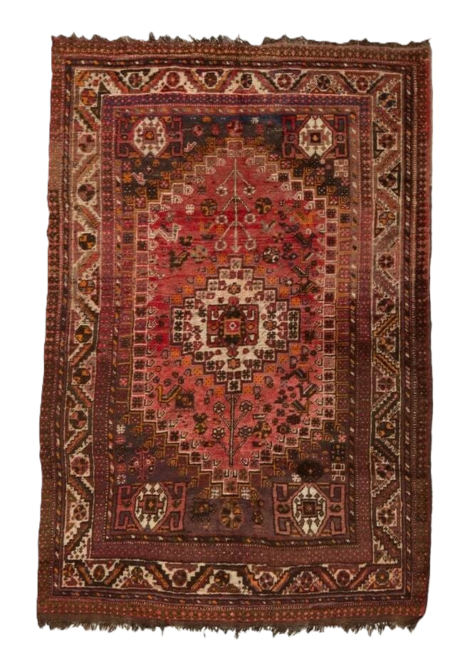 Винтажный ковёр Бужад среднего размера в розово-чёрной гамме